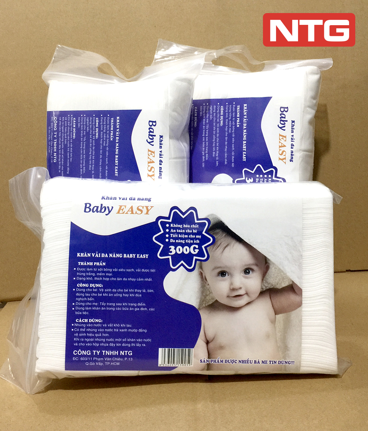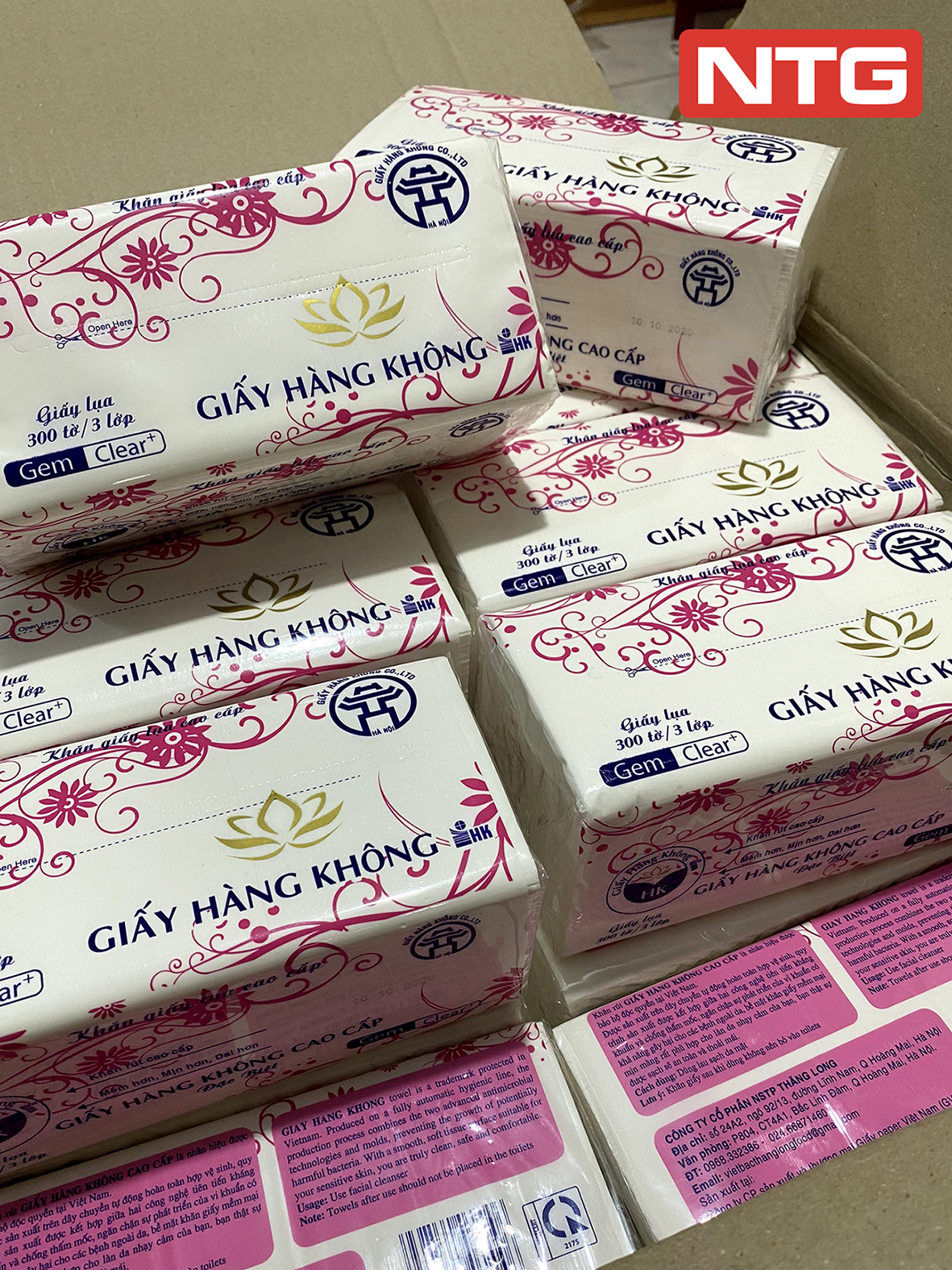 Công ty TNHH Sản Xuất Thương Mại Dịch Vụ NTG chuyên sản xuất khăn ướt, khăn khô đa năng. Cung cấp giấy ăn và giấy vệ sinh và các loại sản phẩm về giấy khác. Sản phẩm giấy ăn và giấy vệ sinh các loại được sản xuất trên dây chuyền máy móc hiện đại thế hệ mới (nhập khẩu 100%),có công suất là 3m/s và toàn bộ sản phẩm được sản xuất từ 100% bột giấy nguyên sinh và nguyên chất, đảm bảo thân thiện với môi trường, hoàn toàn không sử dụng chất tẩy trắng và hóa chất độc hại nên cực kỳ an toàn cho người sử dụng. Giấy trắng, mịn màng như giấy lụa cao cấp, dày, dai, chắc tay mà không bở, không bụi, không để lại bột giấy trên da khi lau.