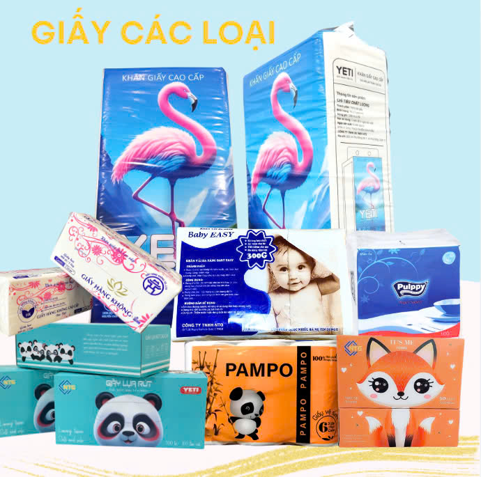 - Giấy các loại: giấy vệ sinh, giấy treo tường, giấy công nghiệp, giấy rút lụa, giấy bỏ túi,…